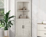 Tall Corner Cabinet with Doors - Wood Grain Beige for Living, Bath, Kitchen