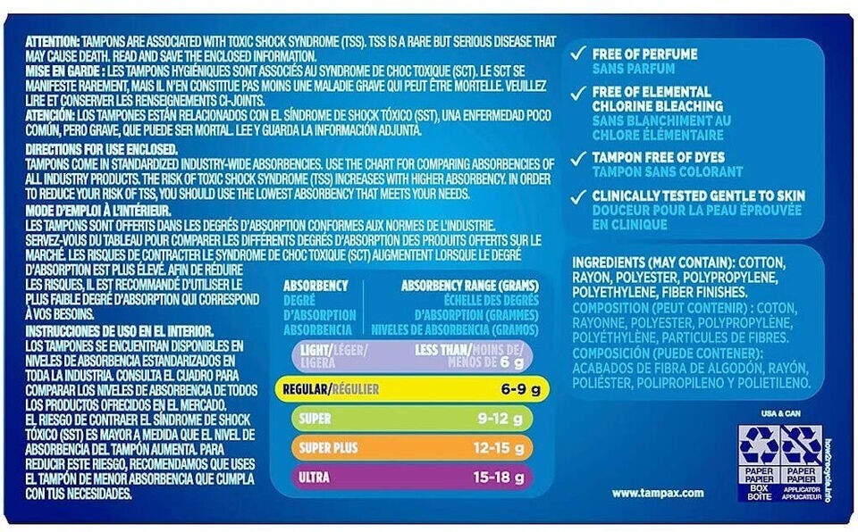 Tampax Cardboard, Regular Absorbency Tampons, 50 Count Brand new in box You will receive (5) FIVE boxes that contains (10) TEN tampons No returns on health and beauty