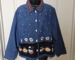 - Tantrums Denim Shirt Women's L Embroidered Holiday Shacket Snowman Buttons Shirt