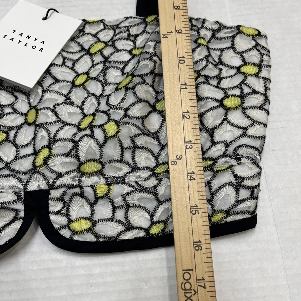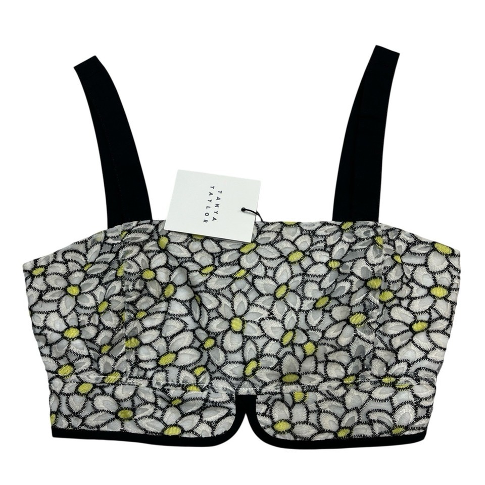 - Tanya Taylor Soha Top Womens 2 White Black Embroidered Floral Crop Organza