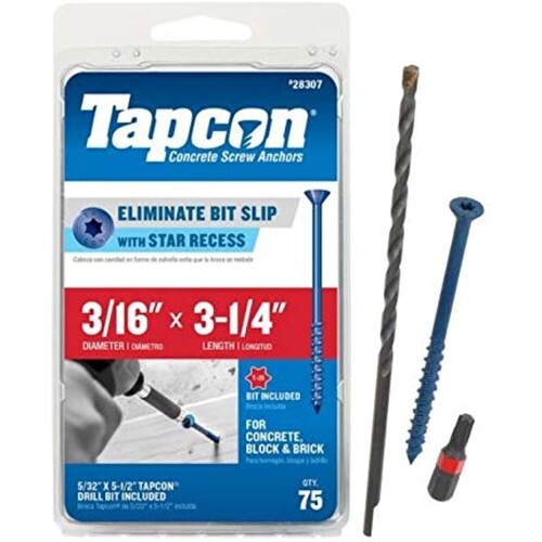 - Tapcon 28307 3/16x3-1/4 Blue Star Drive Bugle Head Concrete Anchors 75/Box