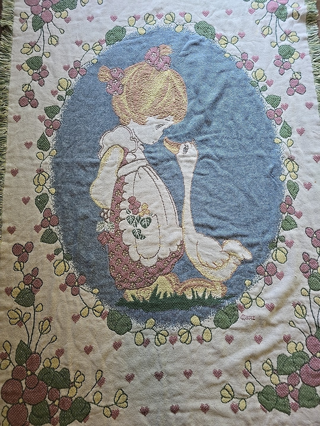 - Tapestry Throw Blanket '93 Precious Moments Goose Make joyful Noise Fringe 47x70