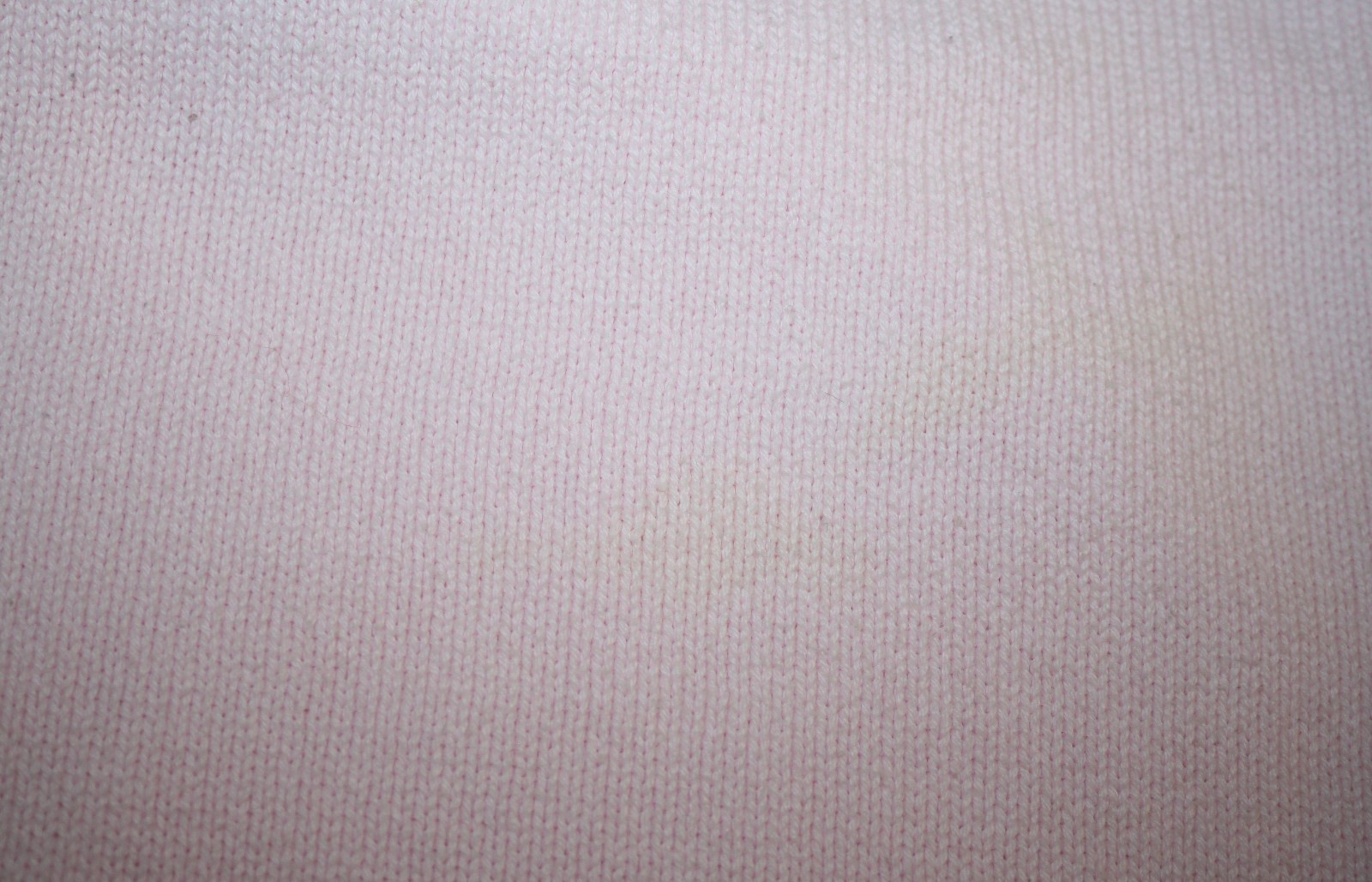 FLAW: Has yellow spots. 100% Cotton knit has edges that curl under