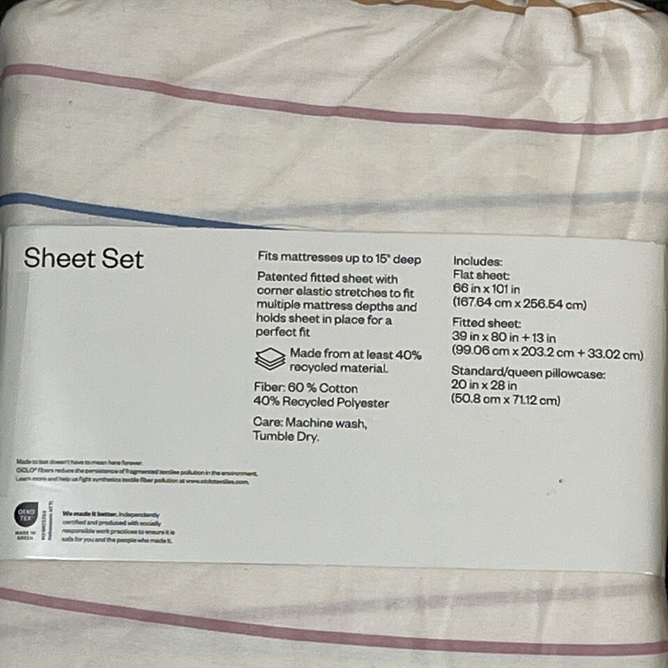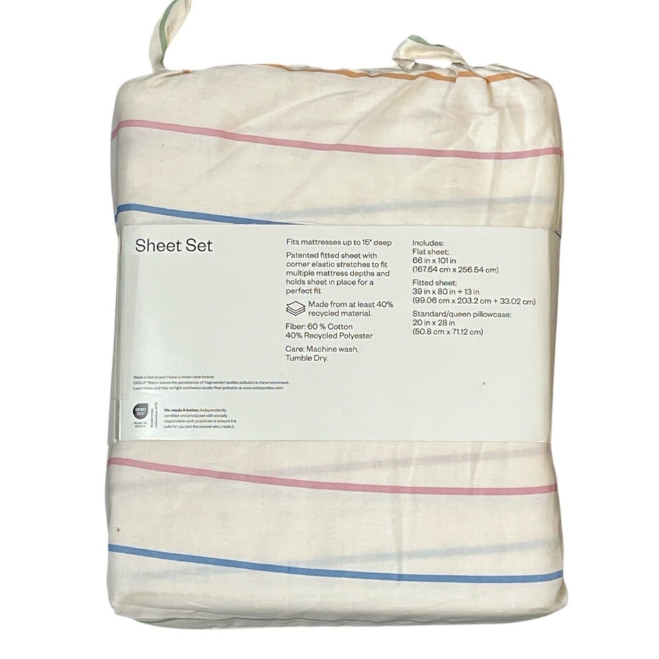 - Target Room Essentials Sheet Set Twin XL Multi Striped Sateen Weave 3PC Classic