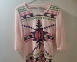 This top is in like new condition. Has a ripped design in the back. Pit to pit measures approx 17". 100% polyester. Has 3/4th sleeves. A14