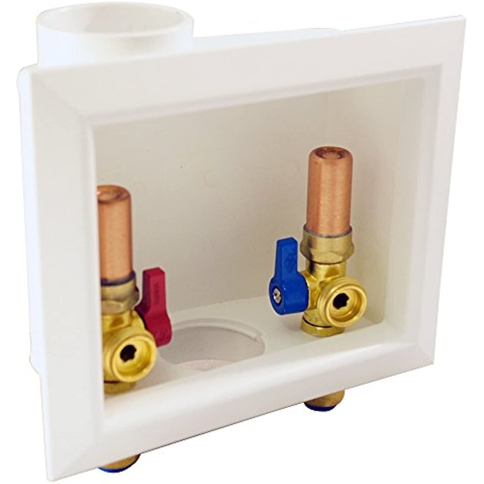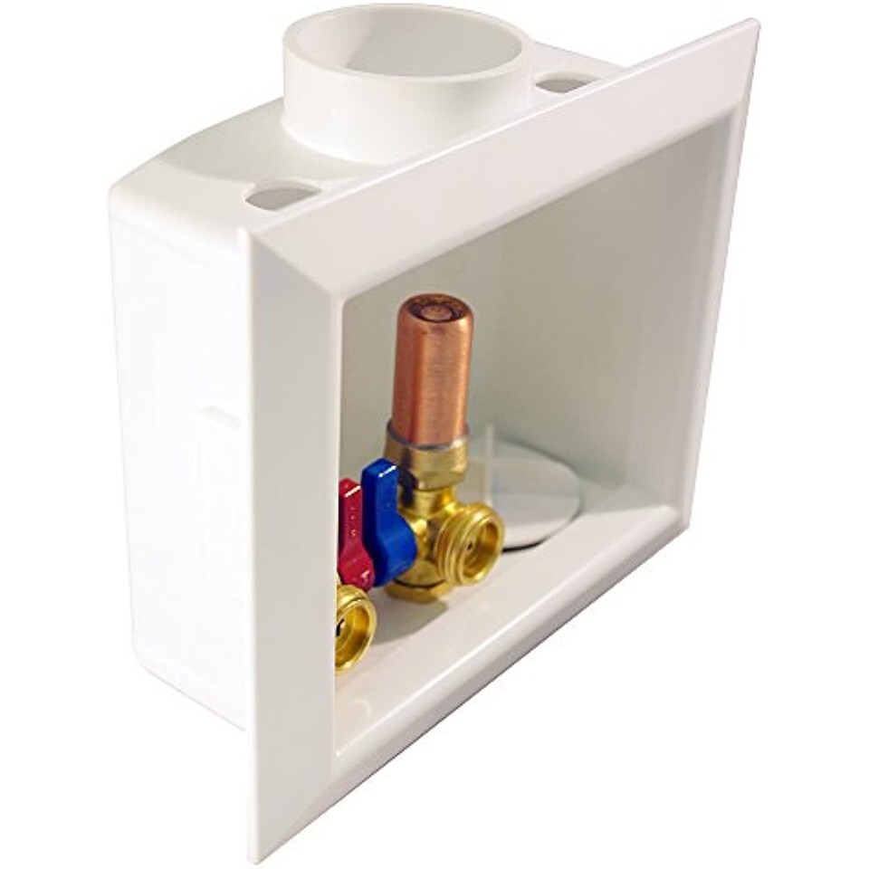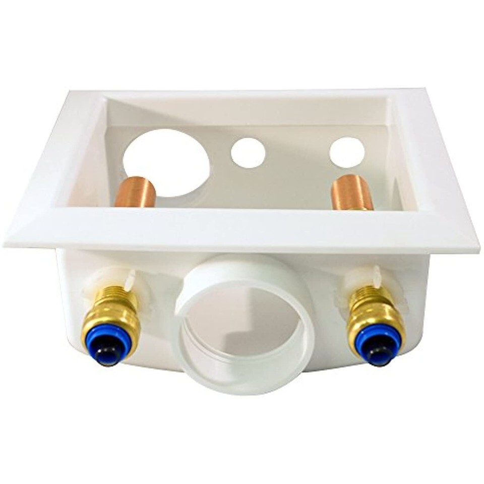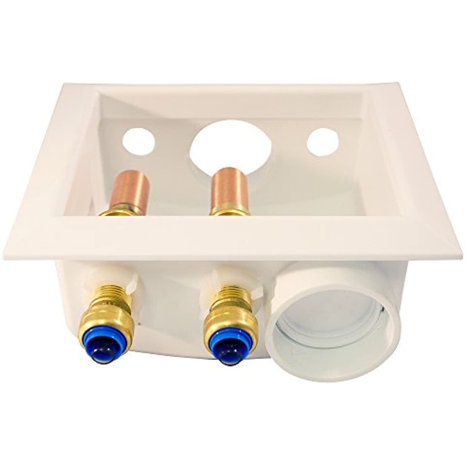 The Tectite by Apollo washing machine outlet box includes a 1/2-inch push-to-connect washing machine valves and can be used to connect copper, cpvc or PEX lines. ideal for installations of washing machines. integrated water hammer arrestor is designed to protect Plumbing systems and fixtures from water hammer. Tectite by Apollo push-to-connect fittings are the fastest, cleanest, and simplest way to connect copper, cpvc, pe-rt and PEX pipe without the use of tools, solder, open flame or glue. simply insert the pipe to allow the high-strength stainless steel teeth to grip the pipe securely against the specially designed o-ring. fitting removal and reuse is just as simple using a simple demount clip (sold separately).