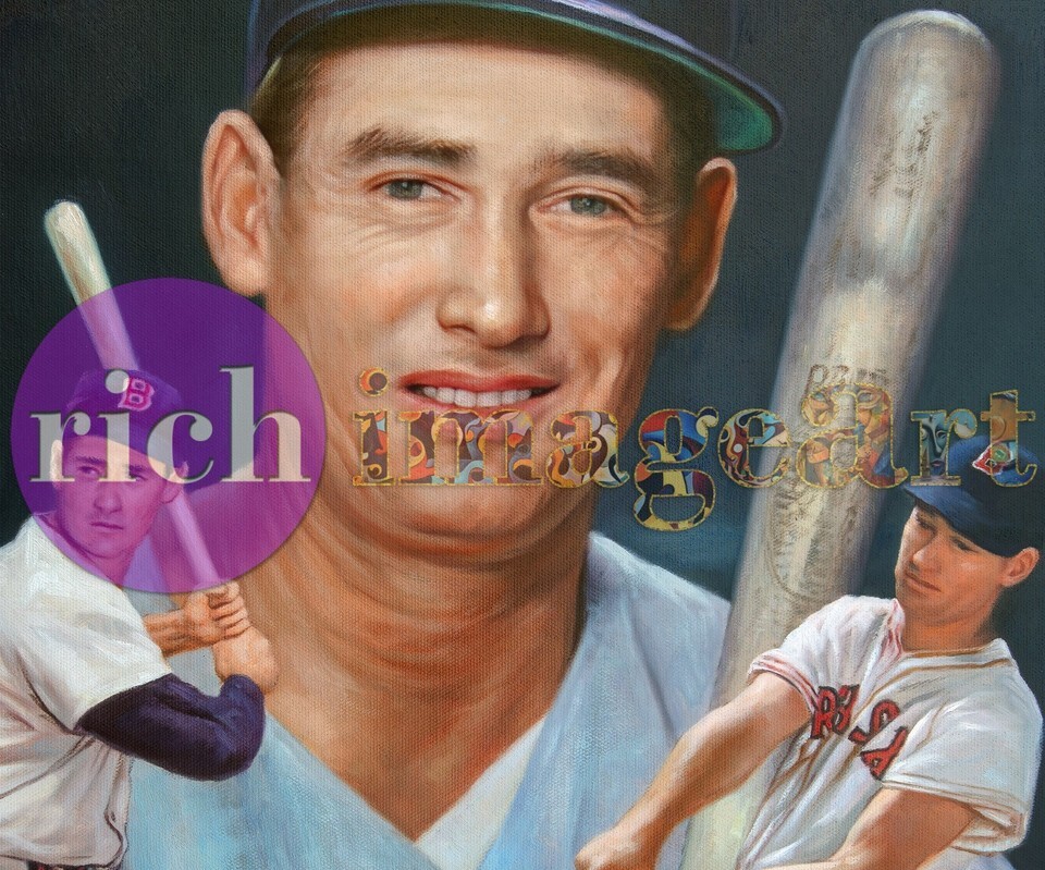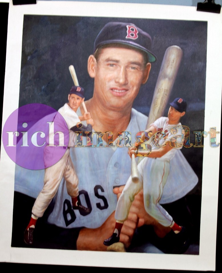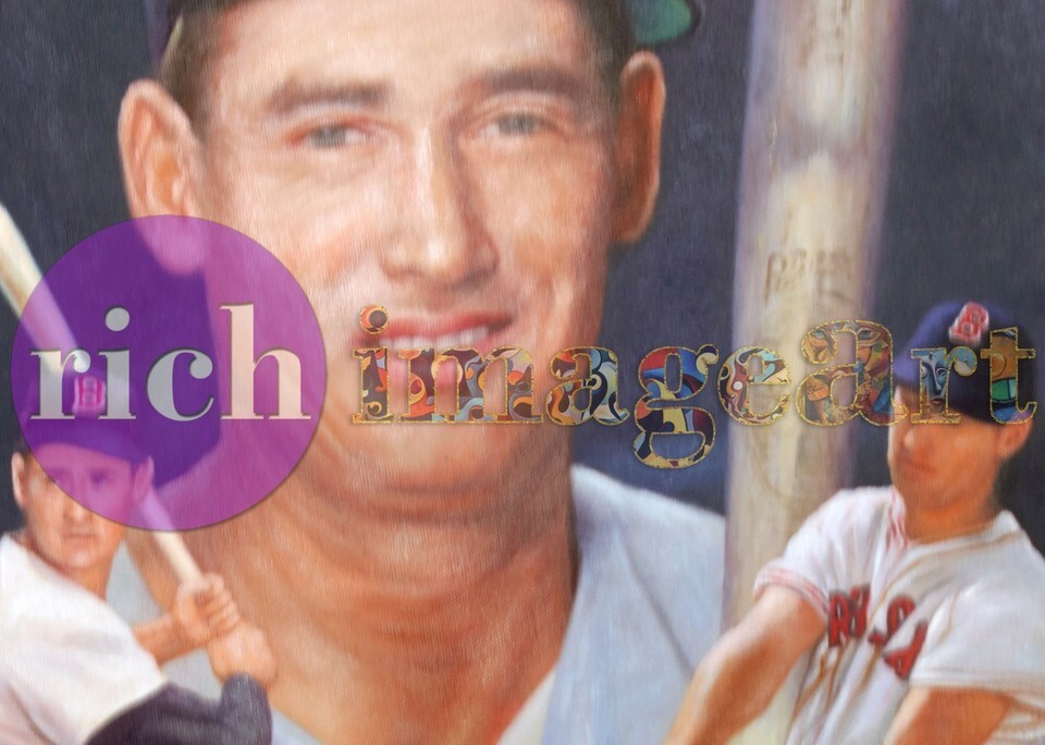 Ted Williams Boston Red Sox MLB Baseball Art Original Oil Painting. This is the one and only exclusive work of art!