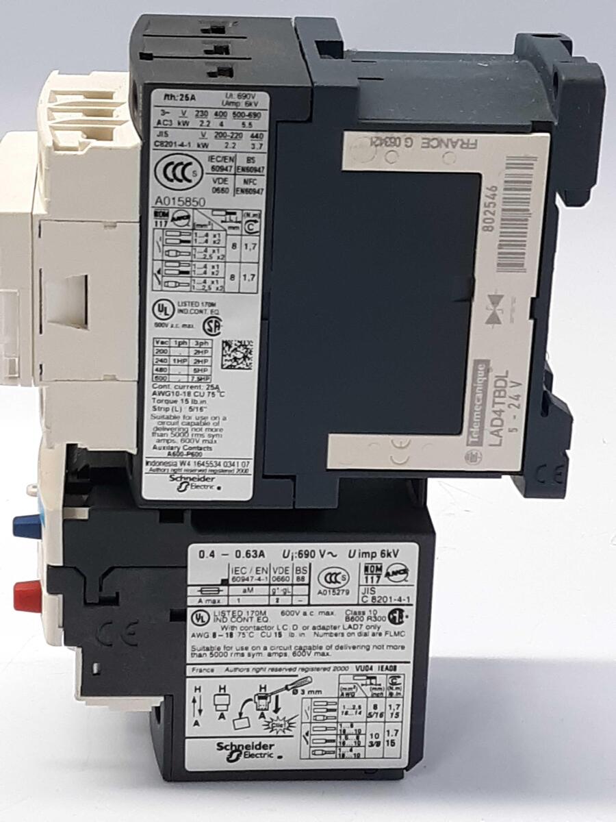 - Telemecanique LC1D09BD Contactor 24VDC Coil 600VAC 25A W/Overload Rly 0.4-0.63A