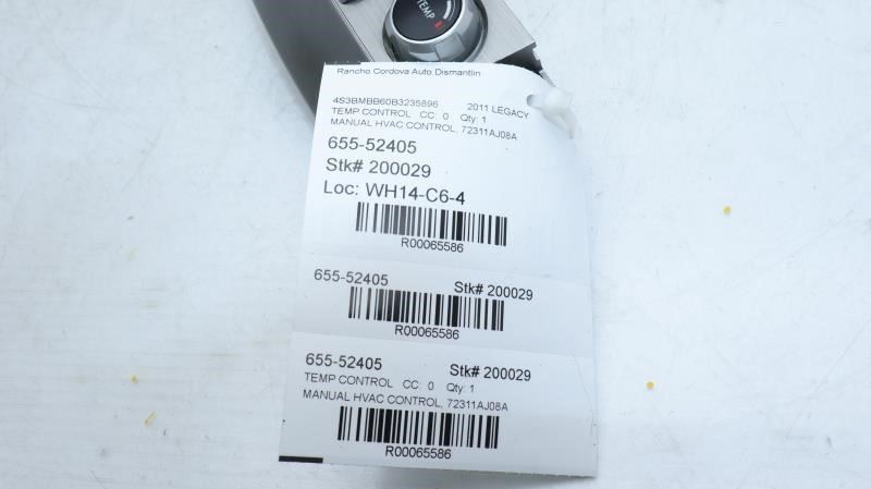 Welcome to our Store! Temperature Control Manual Temperature Control Fits 10-14 LEGACY 65586 Description Donor Vehicle VIN: Model: LEGACY Year: 2011 Mileage: 148000 (0 = not available or unknown) Stock Number: 200029 Store Number: 1 Part Detail Part Grade: A Part Category: U Part Placement: Notes: MANUAL HVAC CONTROL, 72311AJ08A This part will fit these makes and models with these options LEGACY 10-14 manual temperature control (2 outer knobs) WARRANTY / GUARANTEE Return Policy All parts we sell come with a 30 Day Money Back Guarantee unless otherwise stated. The 30 day period starts when you take possession of the part. Please contact us through messaging for a Return Merchandise Authorization Number (RMA) before returning any part. We do not cover the cost of labor charges during the installation of your parts. All original shipping costs are non-refundable. Standard Warranty We offer a standard warranty on all mechanical parts. This covers the part only, no labor charges to install the part. We are not responsible for any improper installation or misdiagnosis. SHIPPING NOTES ABOUT US HELP Rancho Cordova Auto Dismantling ships to US addresses within the continental 48 states. Shipping to Alaska, Hawaii, Puerto Rico, APO, FPO or PO Box addresses is available for select parts only. Please contact us through messaging for details and shipping rates. Local Pick-up at our facilities is available. Please contact us prior to your purchase to arrange local pick-up. Buyer must select 'Buy It Now' prior to local pick-up. Please allow up to 10 days for delivery unless your part is included in's Guaranteed Delivery Program. Most areas in the US are within 5 days. If an item arrives damaged, please contact us via messaging within 24 hours for assistance. Please contact us prior to purchasing this part if you have any questions regarding our business policies, the warranties or guaranties we offer or the fitment of this part with your vehicle. We strive to make sure your vehicles repair needs are met the first time you order a part through our store . To do so, we are happy to verify your vehicles VIN number prior to your purchase, please use the Contact Seller feature within the listing. Parts Grading. A standard code system is used to communicate the condition and quality of a part between automotive recyclers, automotive repair shops, and insurers. Knowing how these codes are used will help you understand whether the part meets your expectations before you buy it and what you can expect from the part when you receive it. A Grade - The highest quality part. It is of low miles and/or exceptional condition for its age. B Grade - The second level quality part. It is of average miles and normal condition for its age. C Grade - The third level quality part. It has high miles and/or light damage. No Grade - A part that has not yet been graded.