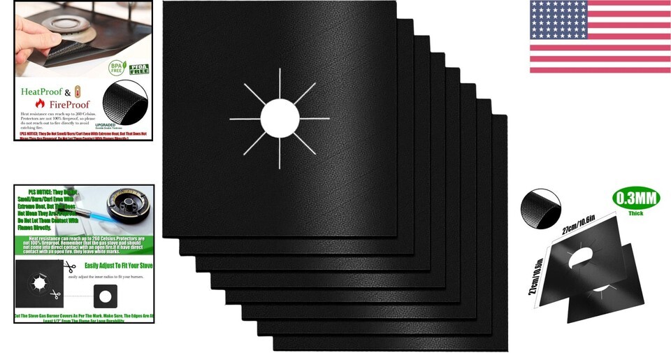 - Temperature Resistant Stove Burner Covers - 8 Pack, 0.3mm Dual Thickness
