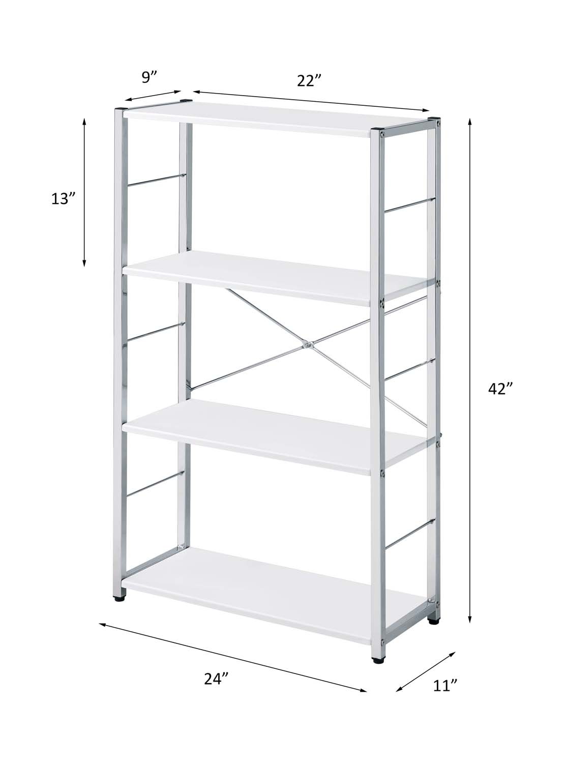 Features: Rectangular Bookcase Metal Frame X-Shape Cross Bar Shelf Thickness: 15mm Metal Tube Size: 22 x 22 x 0.8mm Set Includes: One (1) Bookshelf