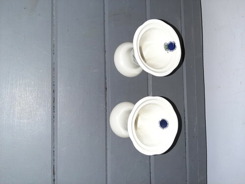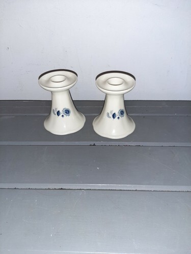 Ter Steege BV Delft Blauw Hand Painted Blue Windmill Candlesticks. 3.5 inches tall and 3 inch diameter at the base.