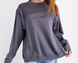 4. Design: Featuring banded detailing, a rounded neckline, a loose fit with a slouchy silhouette, exposed seaming, and inside-out fabric contrast detailing, this pullover exudes casual and laid-back style.