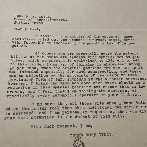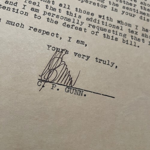 - Texaco Letter The Texas Company 1935 signed C. P. Gunn Port Arthur TX document