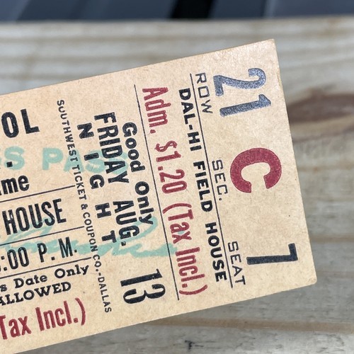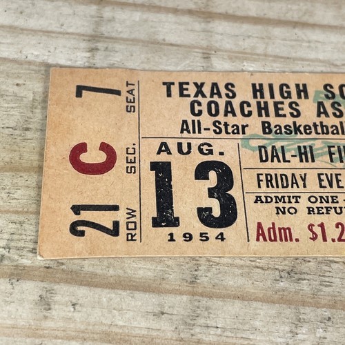 - Texas High School Coaches AssociationAll star basketball game ticket 1954 Dal-hi