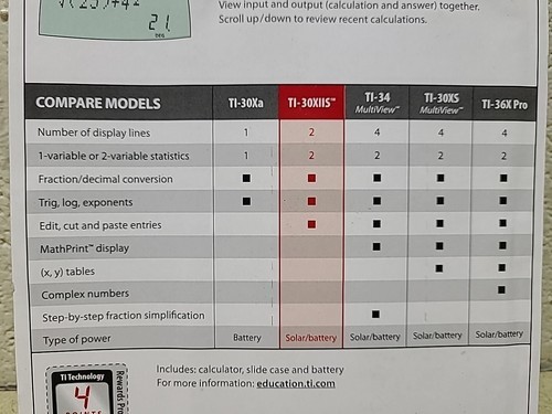 - Texas Instruments TI-30X IIS Fundamental Scientific. 2-line Display Calculator