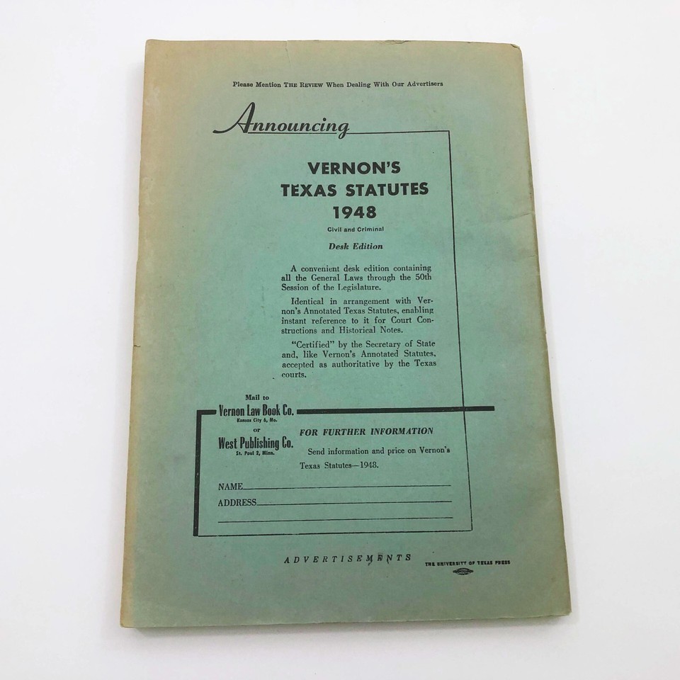 "Texas Law Review" Vol. 27, December, 1948, No. 2
