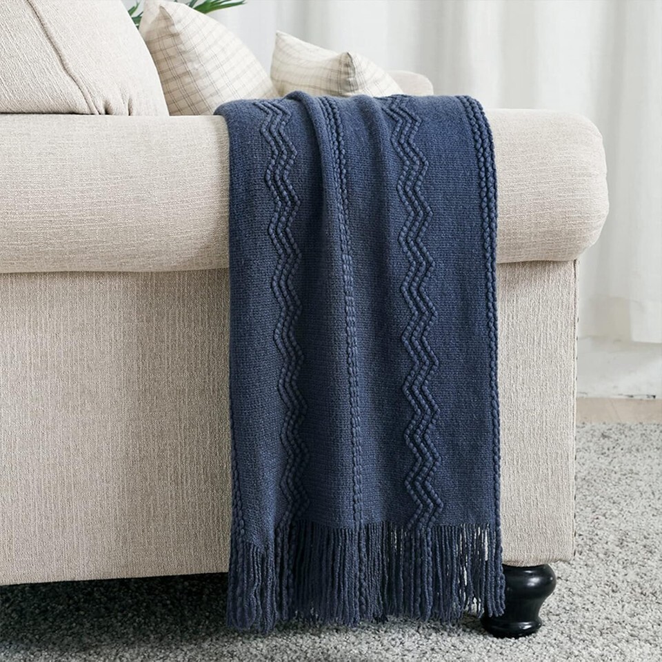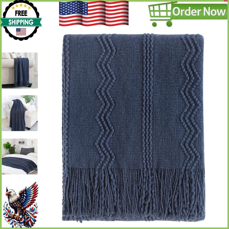 - Textured Navy Throw Blanket 50x60 - Stylish Warmth for Indoor & Outdoor Use
