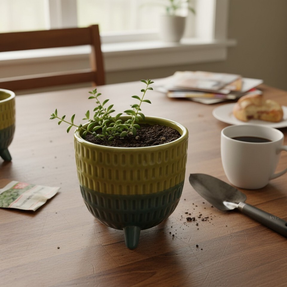 Textured Planter Small 3.5 Inch Ceramic Plant Pot Earthy Green, Muted Olive