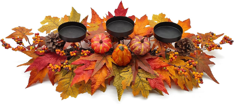 ?Decor Your Autumn?The table is where family and friends gather in the festive Thanksgiving. Decorate your fall dinner table in delightful festive with this traditional handcrafted centerpiece with pillar candles or tealights.