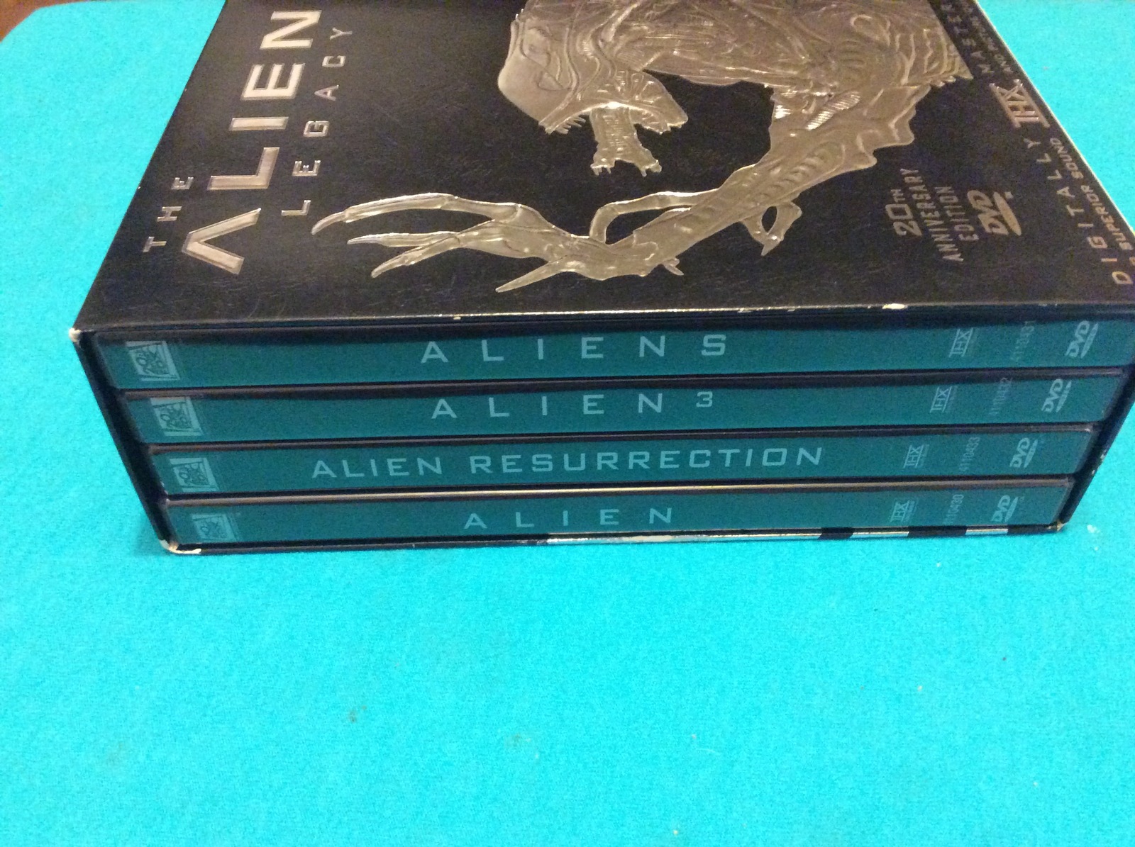 THE ALIEN LEGACY 20th ANNIVERSARY EDITION BRAND NEW 4 SET DVD DISCS (in open / unsealed box) DIGITALLY MASTERED FOR SUPERIOR SOUND and PICTURE QUALITY REGION 1 ENCODING TRADING CARD PACK INCLUDED In stock and ready to ship Once payment is received, shipping will be next day PICTURES ARE OF THE ACTUAL DVD BOX SET BEING SOLD (NO STOCK PHOTOS USED) FREE SHIPPING TO ALL 48 STATES THROUGH USPS GROUND ADVANTAGE ALL DVD BOX SETS WRAPPED AND SHIPPED IN BOX NO SHIPPING TO ALASKA OR HAWAII