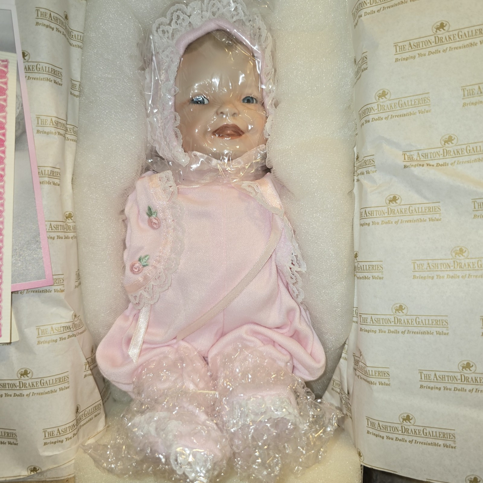 The doll is an original and licensed reproduction from The Ashton-Drake Galleries, making her a valuable addition to any collection. Her theme is Babies, which makes her a perfect gift for new mothers or anyone who loves dolls. The doll is in excellent condition and is ready to be displayed or played with.