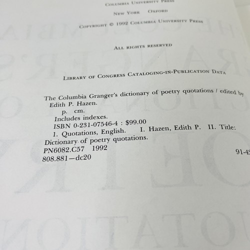 The Columbia Granger's Dictionary of Poetry Quotations - First Edition Hardcover
