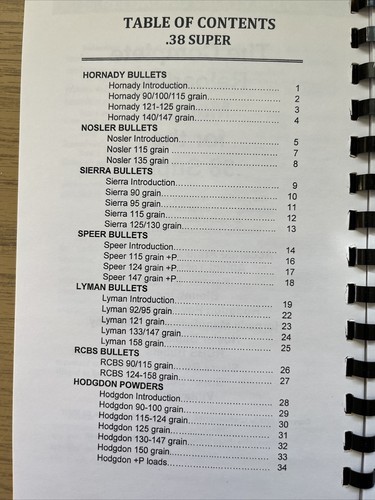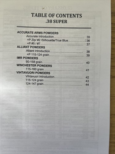 Loadbooks USA the complete reloading manual for the .38 Super , new latest edition, this manual features 48 Pages,1214 Loads, 75 Bullet designs, 48 Powders. Data in this Manual is comprised of