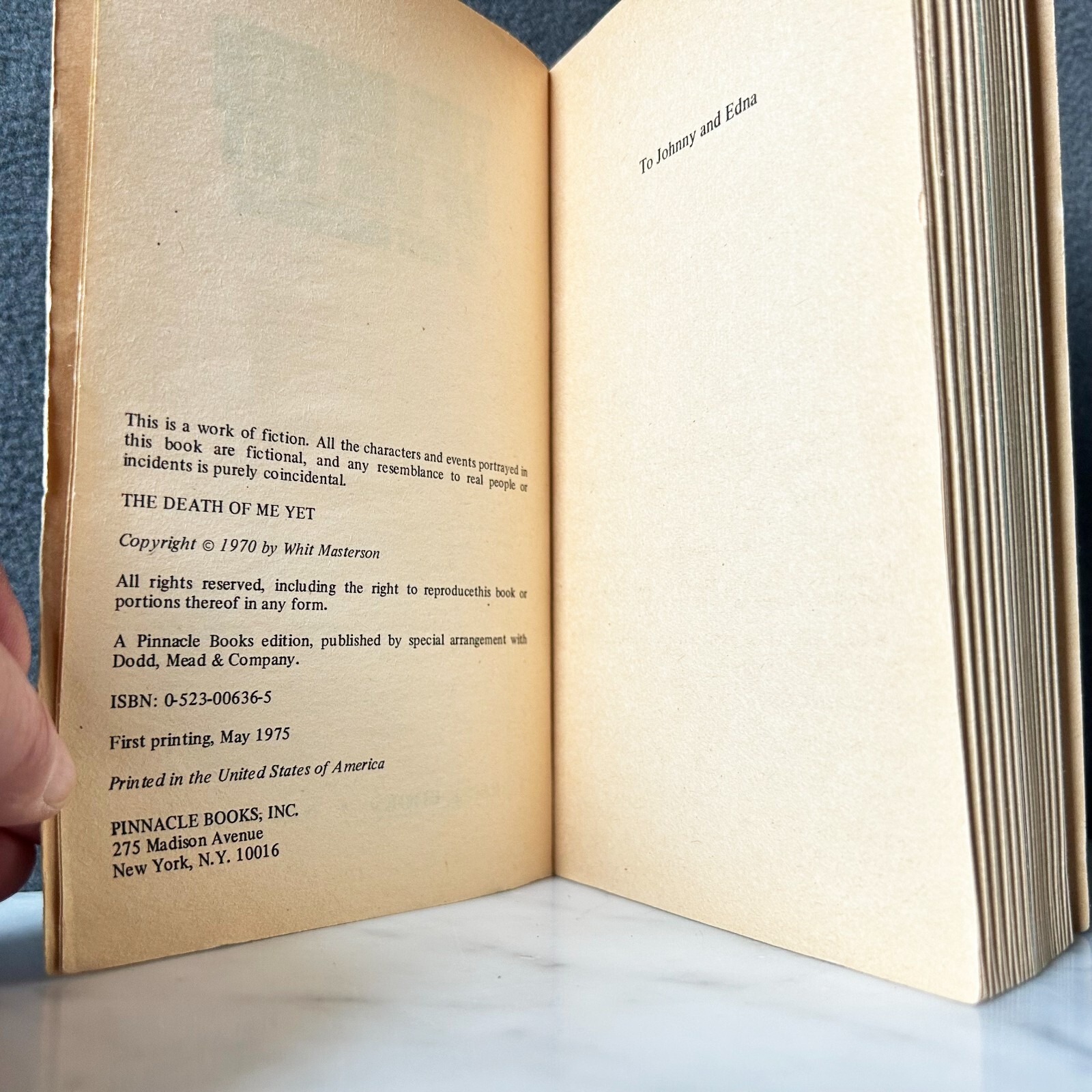 The Death of Me Yet by Whit Masterson vintage paperback book. Pinnacle Books, 1975. Good vintage condition. Please see the pictures for more details.