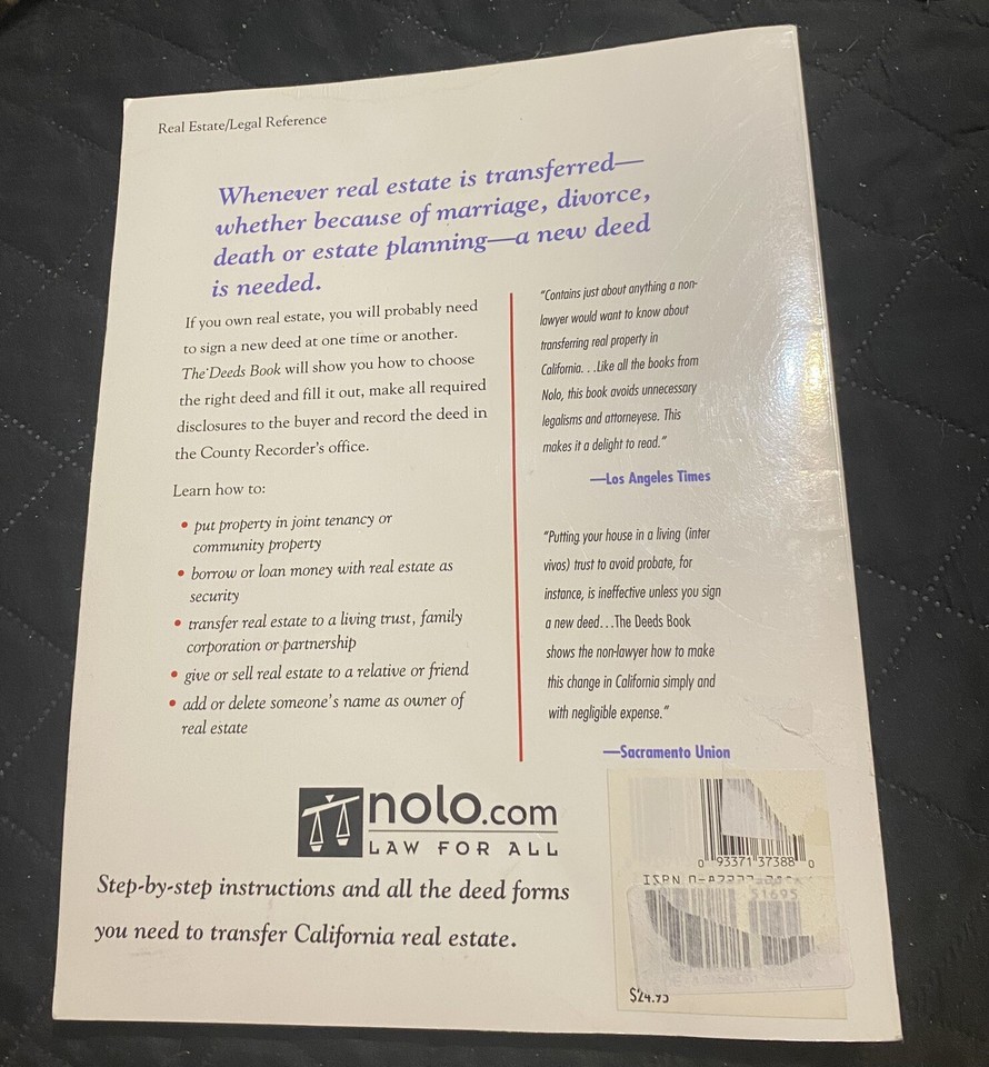 The Deeds Book How To Transfer Title To California Real Estate Softcover With Deeds And instructions