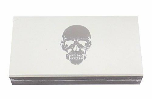 The Joy of Light Designer Matches Silver Foiled and Embossed Skull on White Embossed Matte 4" Collectible Matchbox Approx Size: 4.5 x 2.5 x 1 High gloss finish, double-lined and color coordinated tray Full Striker on side 45-50 matchsticks that have been paraffin dipped to ensure a longer burn time Great idea for your own home use, or as a special gift or hostess present