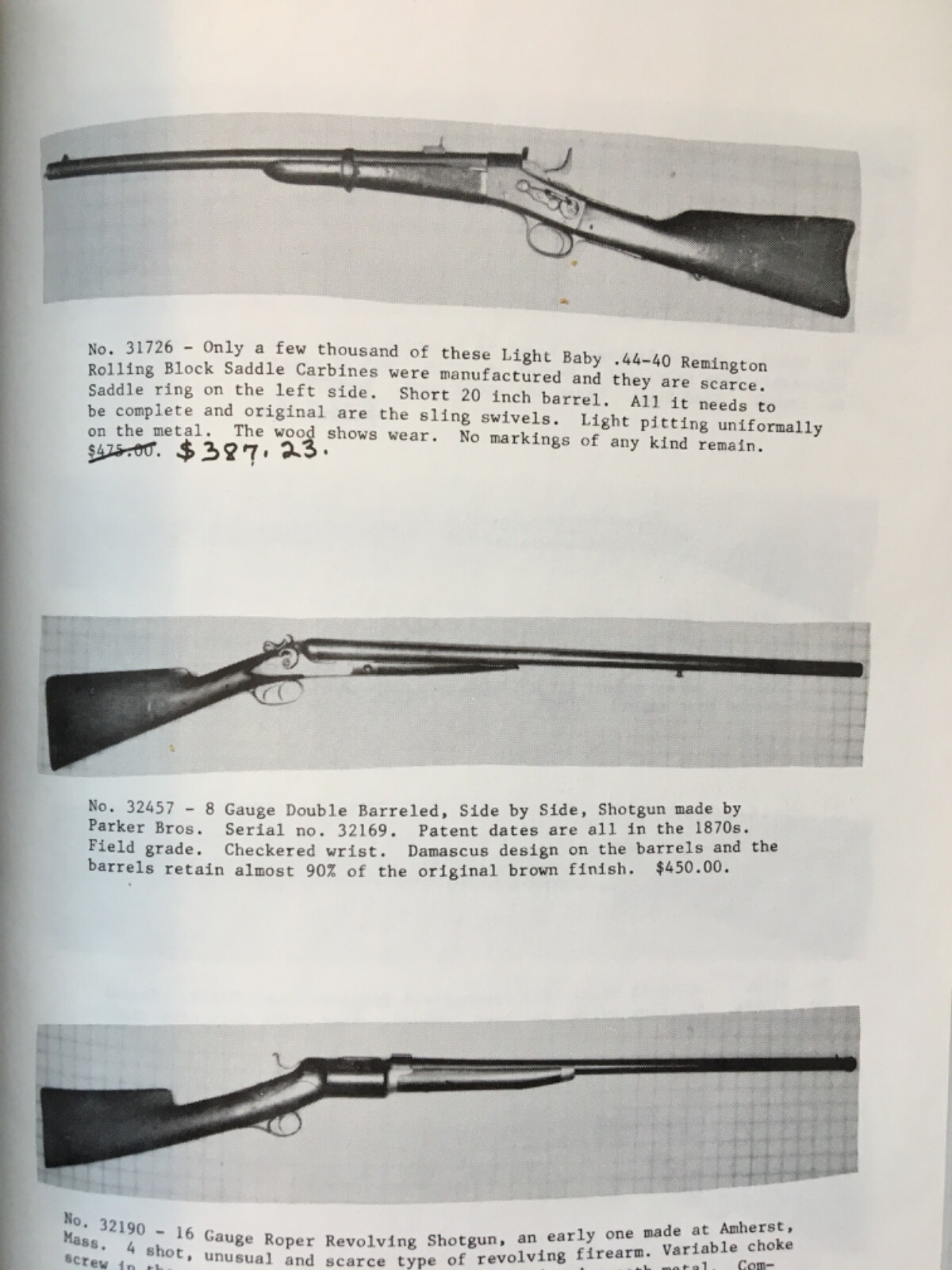 The Museum of Historical Arms 1986-87 Catalog, 220 pages in good condition featuring, Cap and ball revolvers, Battleaxes, Flintlock Blunderbusses, Trapdoor rifles, Japanese Katonas, Swords, Broadswords, swagger sticks,, Scimitars, Sword canes, Historic documents, Bayonets, Daggers, Plate Armor suits,Cannons, holsters and more.