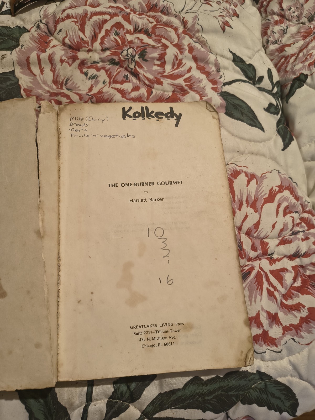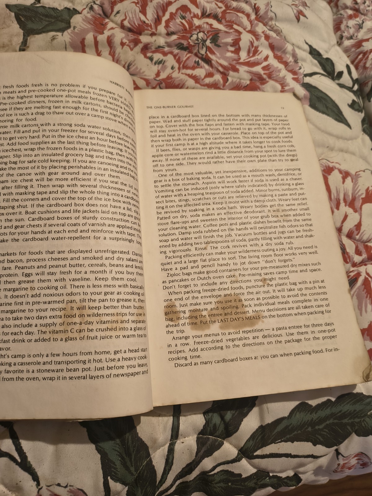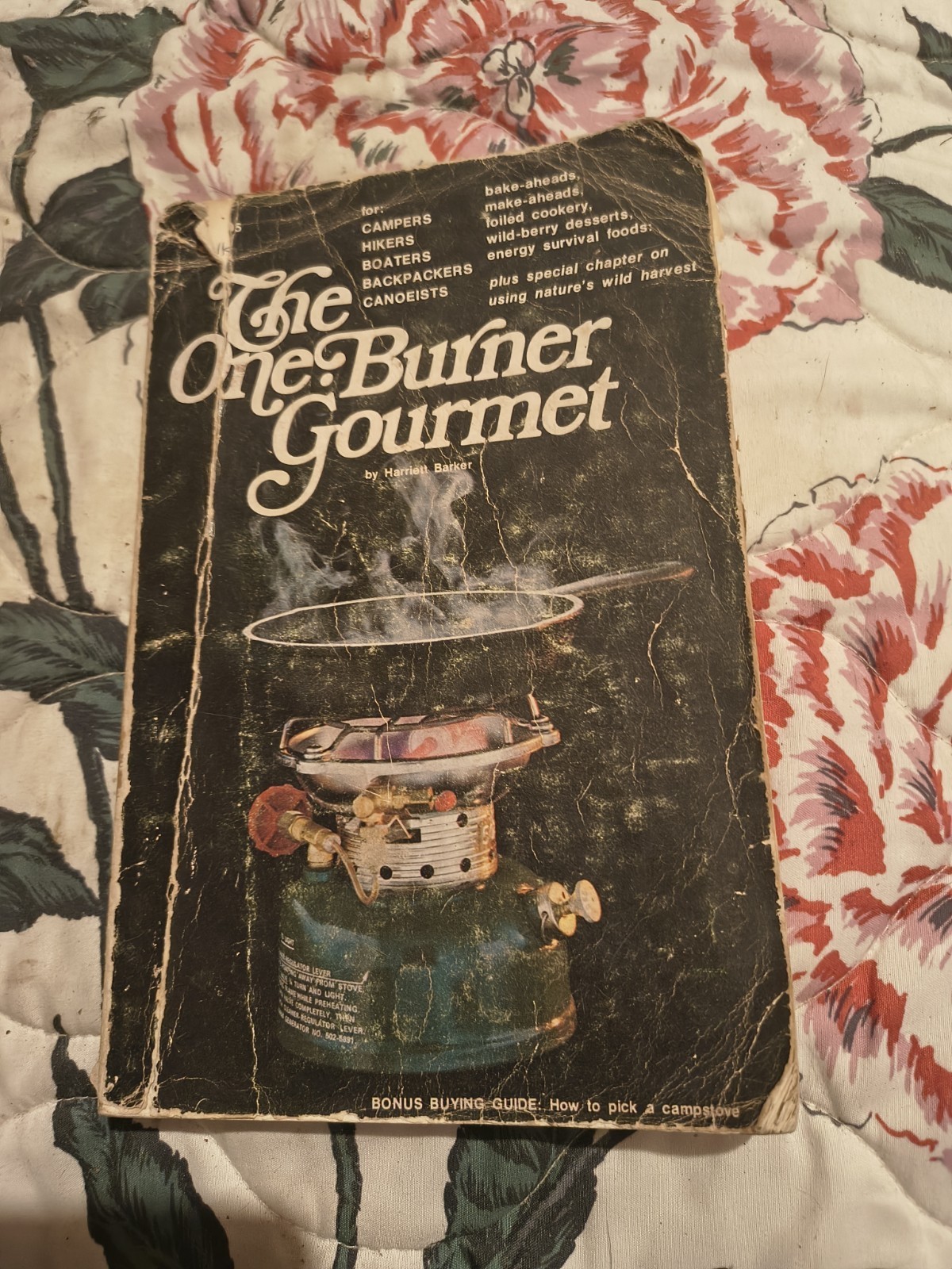 THE ONE BURNER GOURMET FOR CAMPERS, HIKERS, BOATERS, By Harriett Barker 1975 no back last page coming out has writing stains