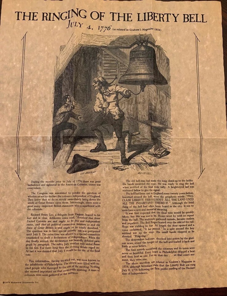 The Ringing Of The Liberty Bell Replica Parchment Document