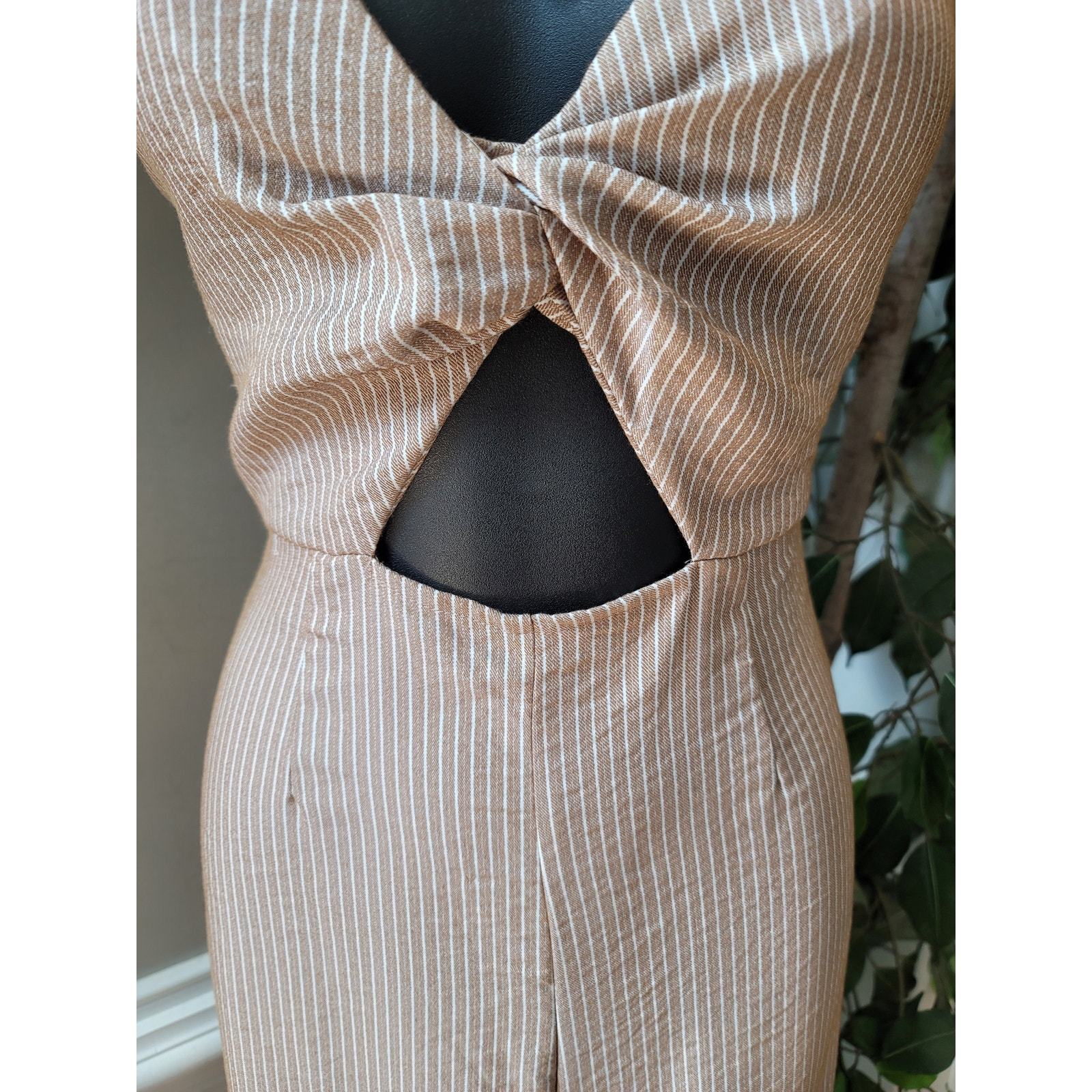 - The Room Jumpsuit Women Medium Beige White Striped Cutout Wide Leg Sleeveless