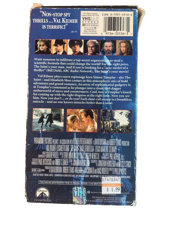 - The Saint (VHS, 1997, Paramount Presentations): Drama, Action, Spy, Val Kilmer
