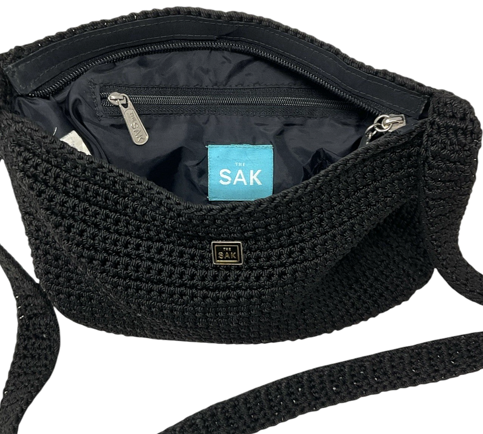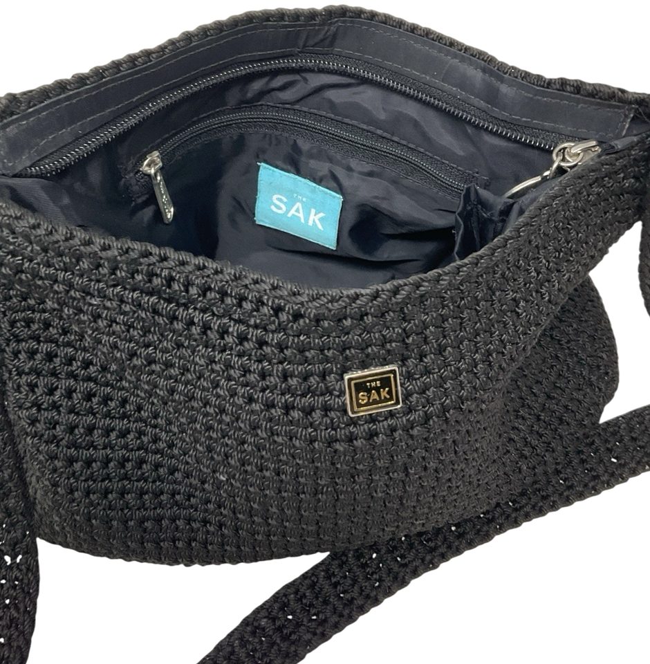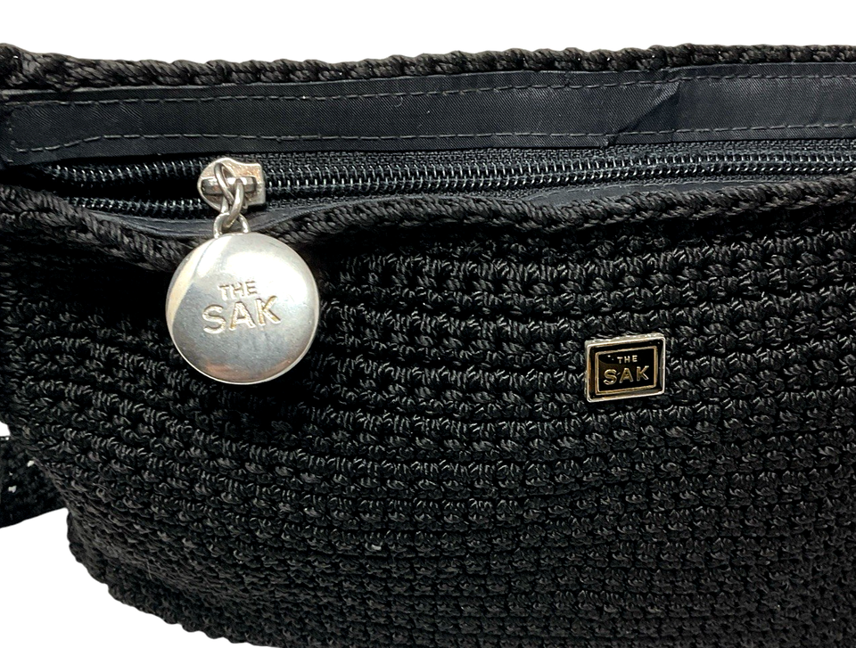 - The Sak Black Crochet Hobo Shoulder Bag Zip Closure Inside Pocket Boho Purse