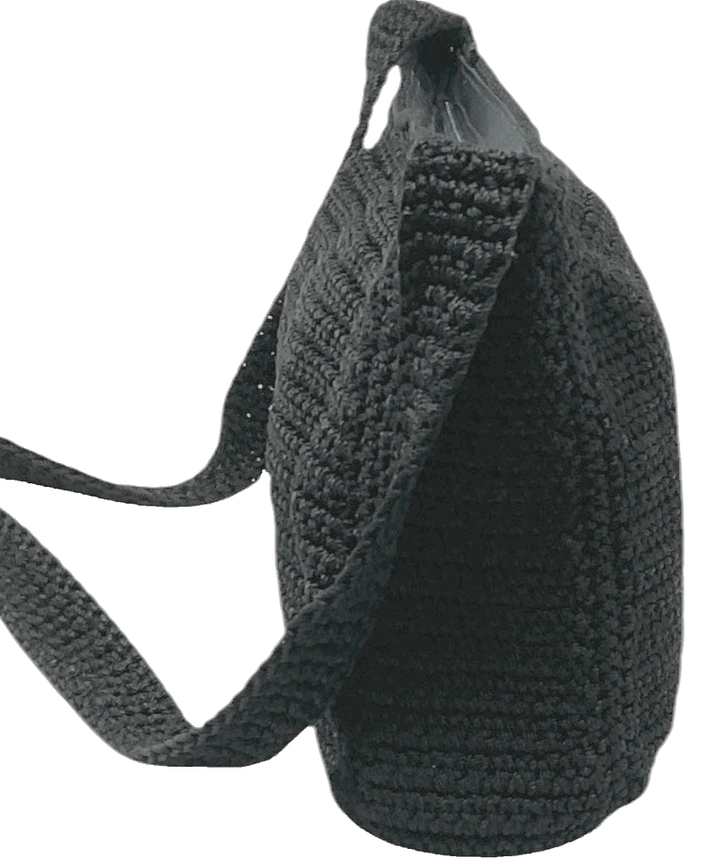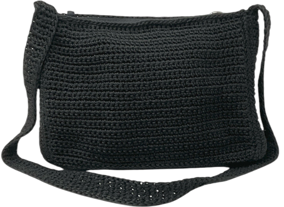 The Sak Black Crochet Hobo Shoulder Bag Zip Closure Inside Pocket Boho Purse