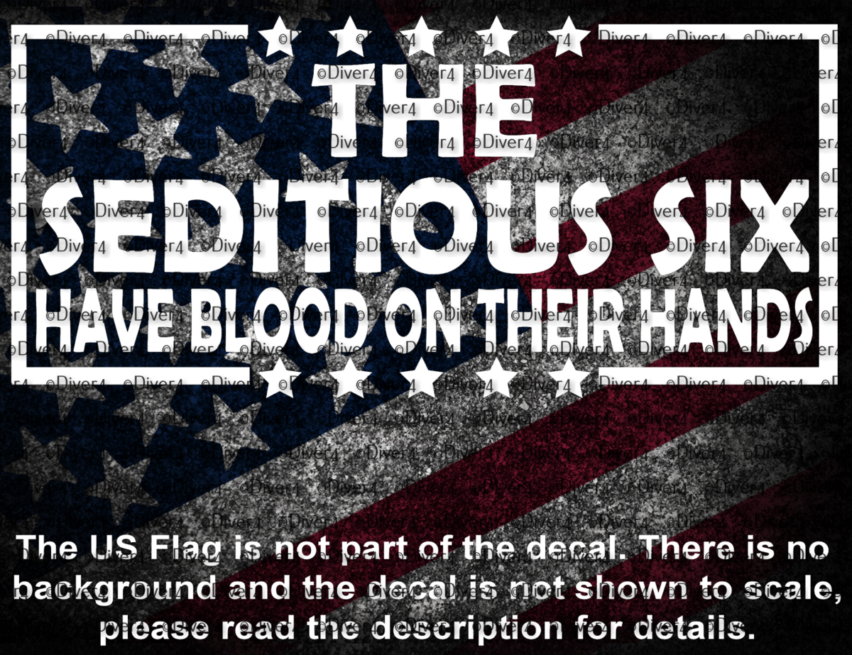 The Seditious Six Have Blood On Their Hands Cut Vinyl Decal Sticker US Seller