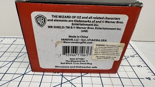 This 12oz Decal Mug features an iconic character from the classic movie 'The Wizard of Oz'. It is perfect for fans of the movie and collectors of movie memorabilia. The mug is made in China and can be used for everyday drinks or as a decorative piece. Show your love for the Bad Witch with this one-of-a-kind mug.