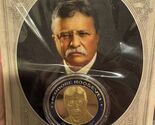 This is a commemorative coin of the 26th President of the United States, Theodore Roosevelt. The coin celebrates his contributions to American politics and his legacy as a leader. The front of the coin features a likeness of Roosevelt, while the reverse displays an image of the Charge of San Juan Hill. This collectible item is a must-have for any history enthusiast or collector of presidential memorabilia. It is a tangible reminder of the impact that Roosevelt had on American politics and his lasting influence on the nation. Add this Theodore Roosevelt commemorative coin to your collection today.