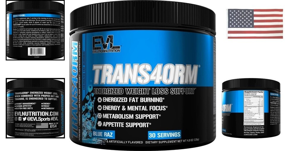 - Thermogenic Fat Burner for Men Powder, Trans4orm Fast-Acting Energy & Metabol...