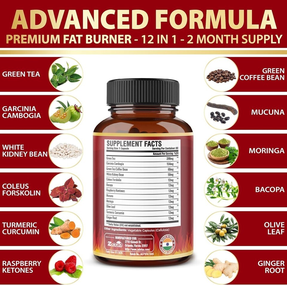 Contains 12 powerful ingredients, including Garcinia Cambogia, Green Tea, Green Coffee Bean, and White Kidney Bean.