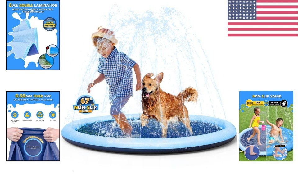 - Thick Non-Slip 67-Inch Splash Pad - Safe and Fun Water Play for Kids & Pets
