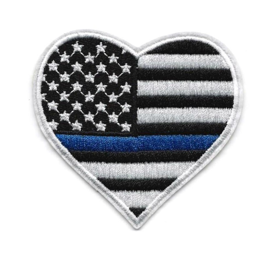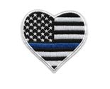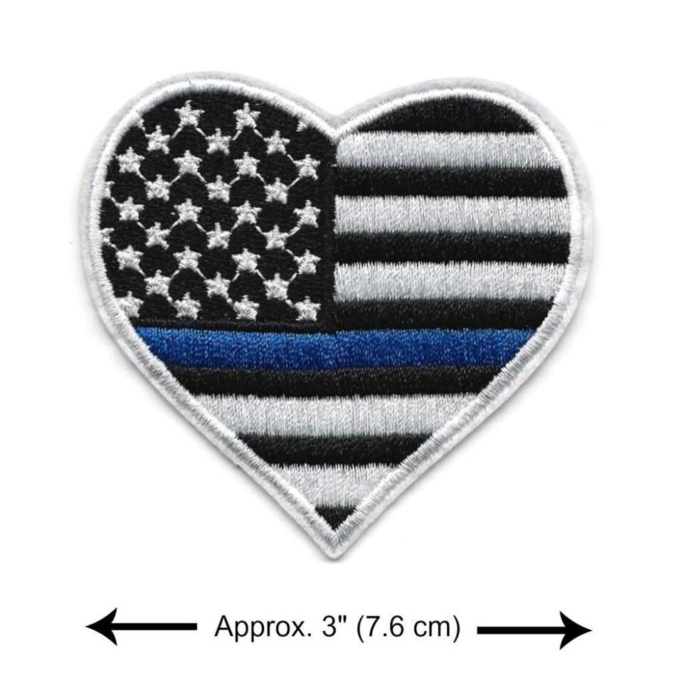 THIN BLUE LINE HEART IRON ON PATCH 3" Black White USA Flag Police Awareness NEW
