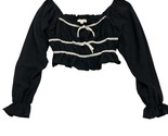 - Thirty Thirty Y2K Top L Black Milkmaid Cropped Puff Sleeve Smocked Coquette