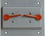 Product description FS PVC 2G TOG Cover From the Manufacturer Box Cover; Weatherproof; 2 Gang; 4.85-Inch Length; 4.85-Inch Width; 1.84-Inch Depth; Polycarbonate Material; Gray Color; Box or Device Mount; For (2) Toggle Switches; UL, CSA Approval.