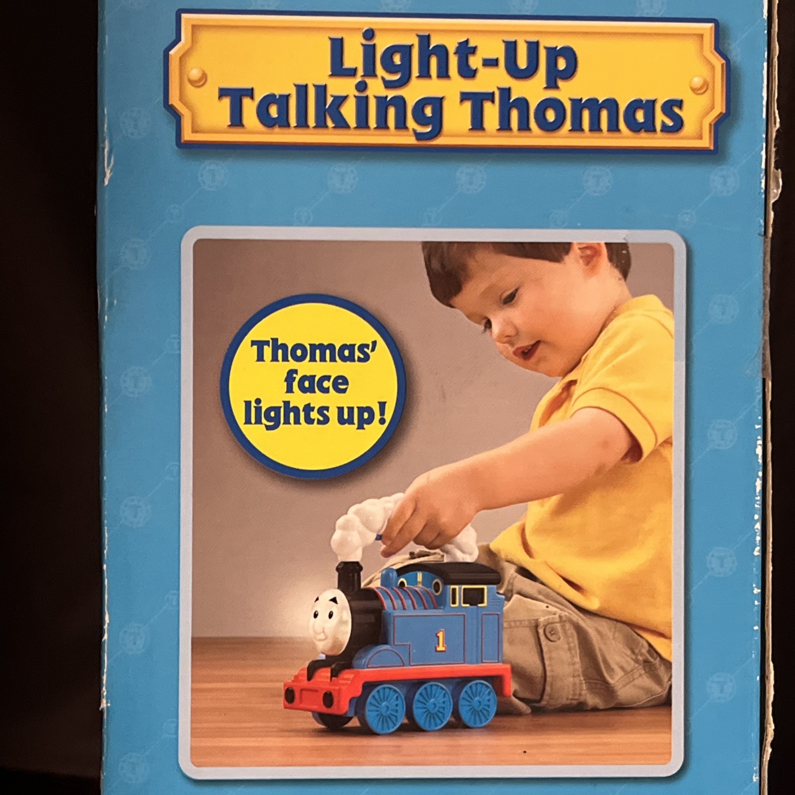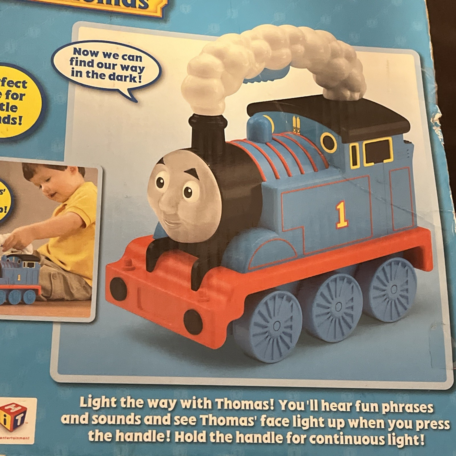 A train engine of which lights up and talks, making it perfect for imaginative play. You will hear fun phrases and sounds such as "Now we can find our way in the dark!" and see Thomas's face light up when you press the handle! Hold the handle for continuous light. Great item for your child to use as a night light. Note that the wheels do not move but it slides along easily.
