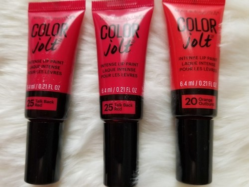 This sale is for three (3) Maybelline New York Lip Paint Color Jolt Intense color Two (2) ~ Talk Back Red #25 One (1) ~ Orange Outburst #20 6.4 ml each Lip paint is brand new in original packaging ~ never opened Please view photos for a good description of this item Thank you!