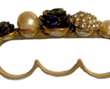 A three-finger ring with a molded black rose in the center, cluster of rhinestones and beads on the sides. Two outer rings are about a size 8 and the inner one is about 8.5.